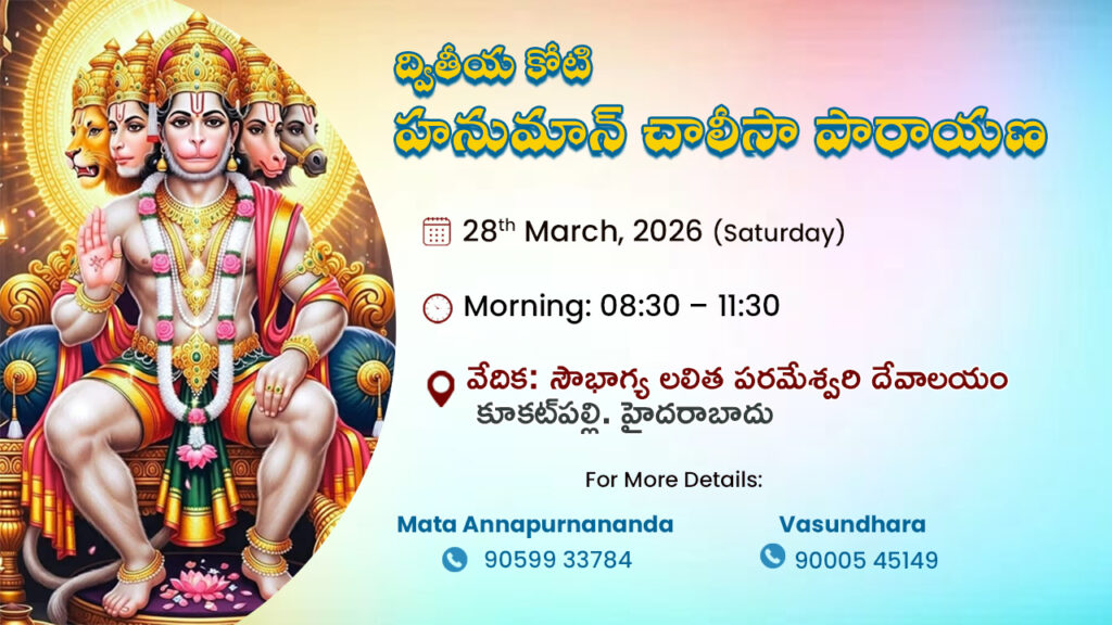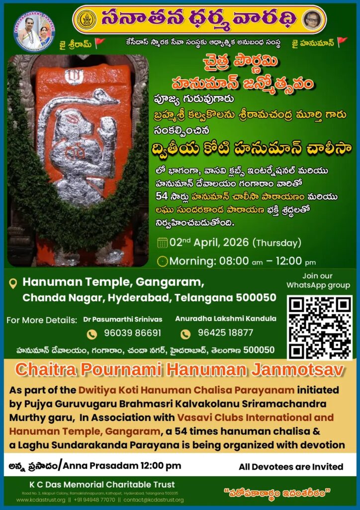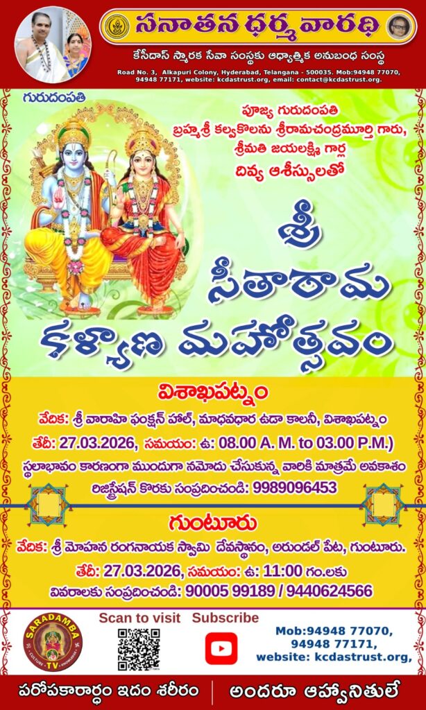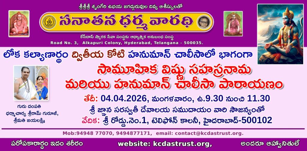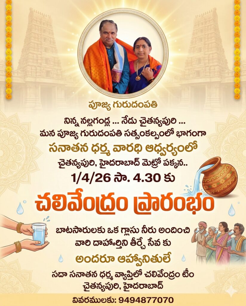 21మార్చి-2026(శనివారం/Saturday), సనాతన ధర్మ వారధి ఆధ్వర్యంలో…పూజ్య గురు దంపతుల ఆశీస్సులతో, వారి సమక్షంలో….